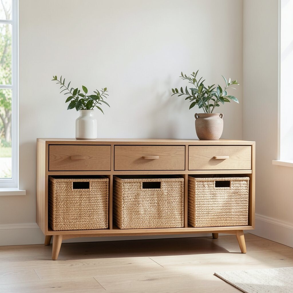 Woven storage baskets offer a practical yet stylish storage solution. They come in various sizes and can be used to organize anything from blankets to toys.