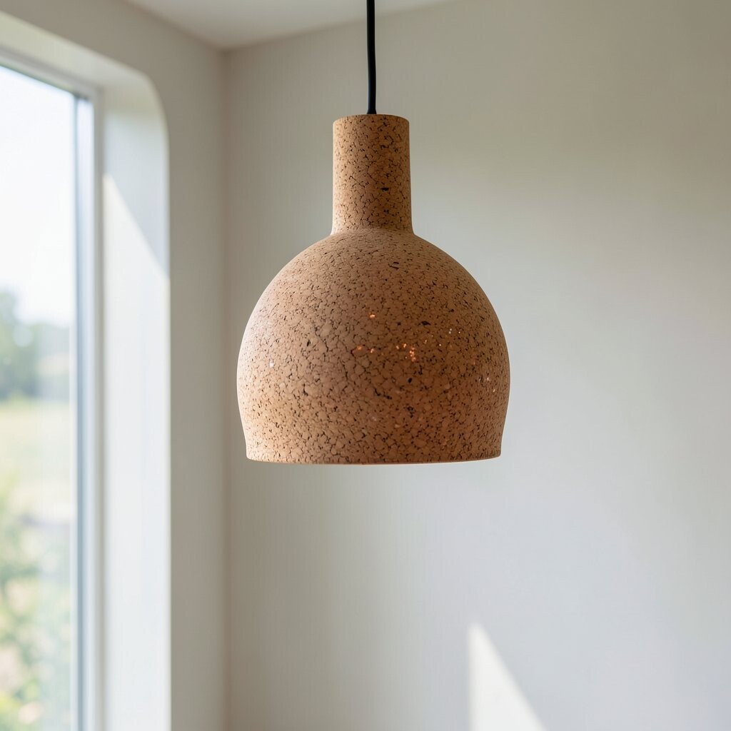 Cork pendant lights are an eco-friendly choice that adds warmth and texture. Their natural appearance blends seamlessly with Japandi decor.