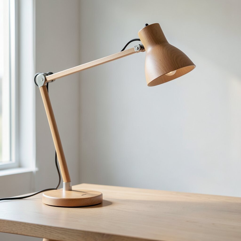 An adjustable arm desk lamp is both practical and stylish. Its flexible design allows for precise lighting.