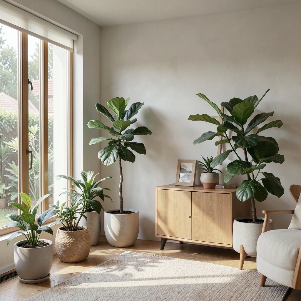 Plants can be placed on shelves, hung from the ceiling, or grouped in corners. They connect beautifully with the natural elements of Japandi design.