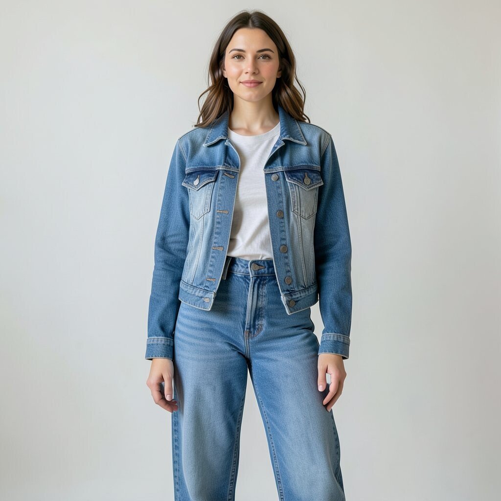 This outfit is easy to personalize with a graphic tee, a soft blouse, or even a hoodie underneath. It is also a smart choice for people who want a strong style with pieces they can wear again and again. If you want to keep costs low, use one denim piece you already own and add another in a different wash.