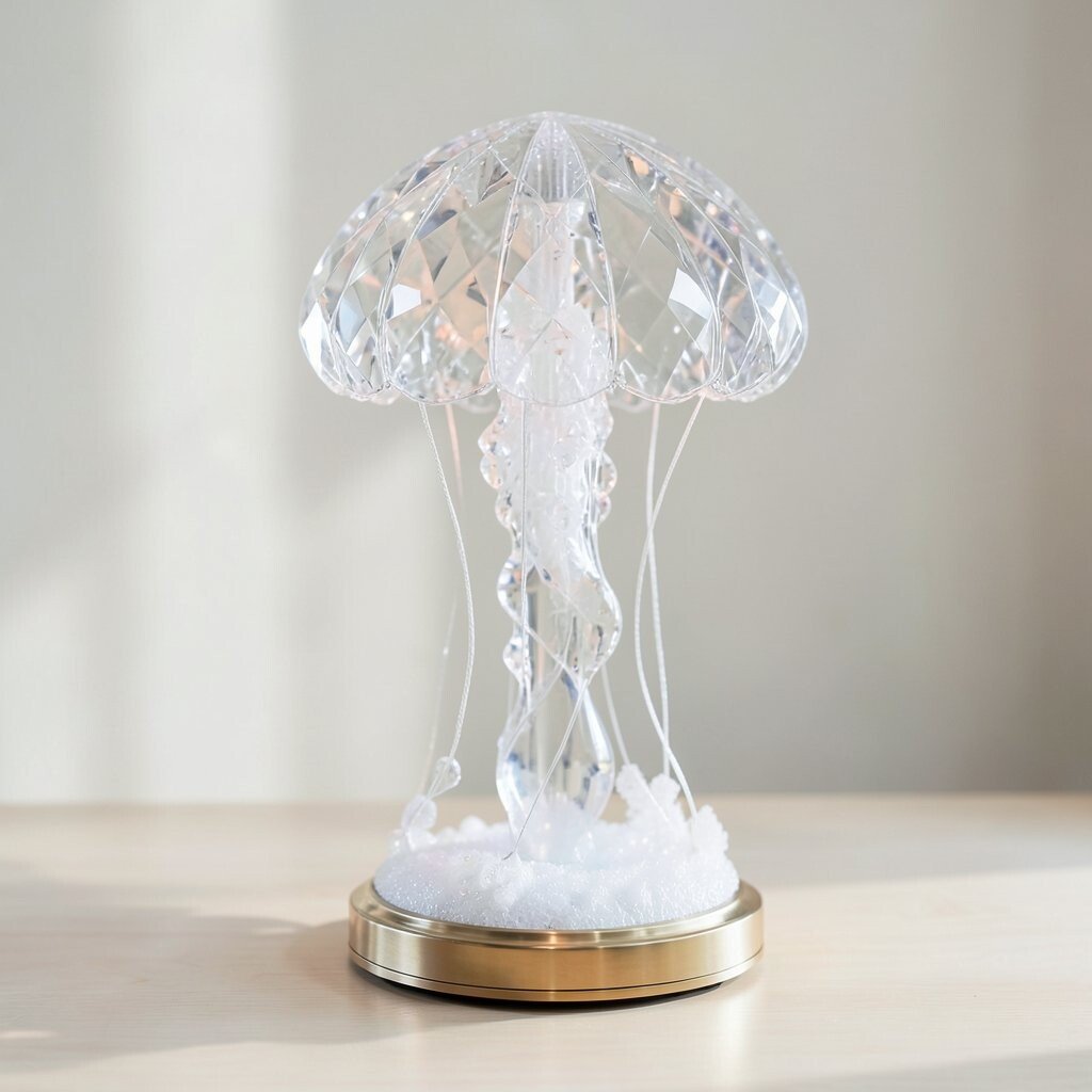 The classic glass jellyfish lamp is a timeless piece that radiates elegance. Its transparent body encapsulates floating jellyfish that seem to dance in the water.