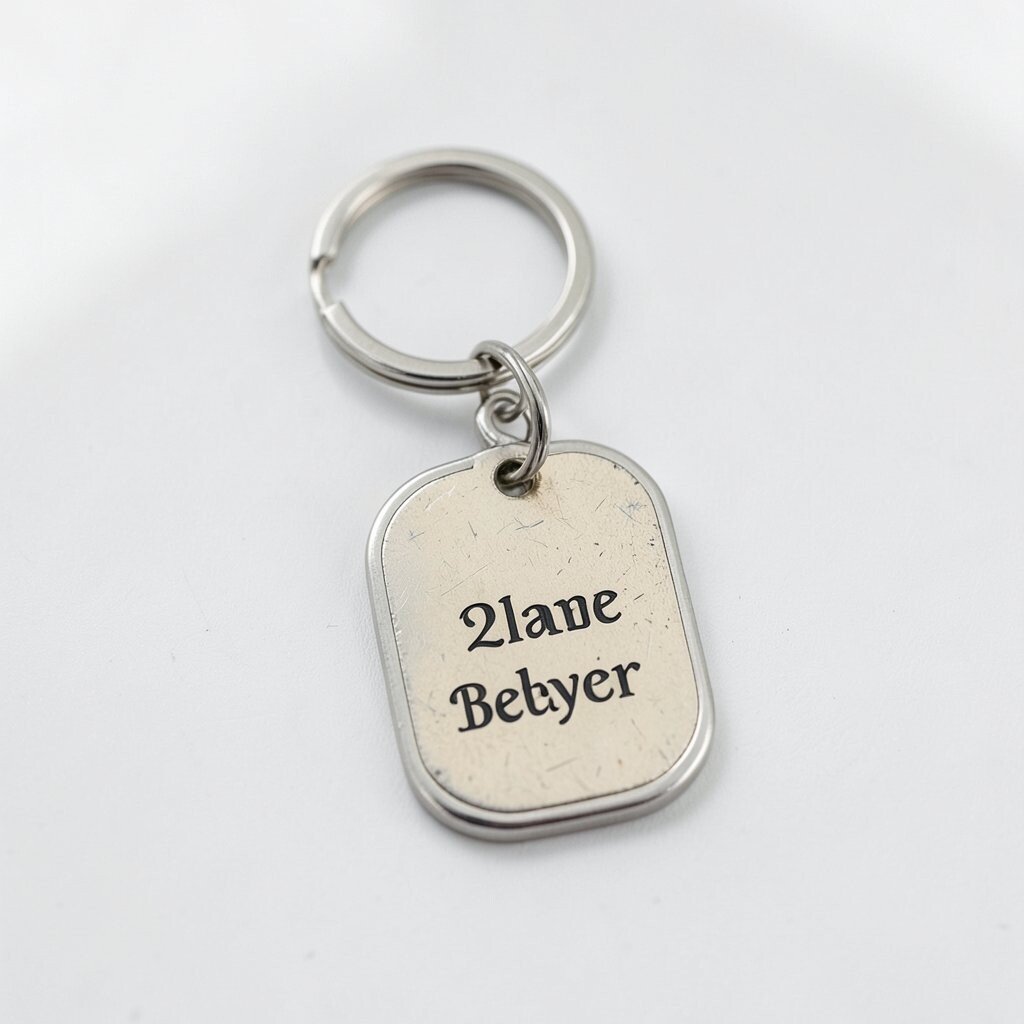 A name plate keychain has a clean and direct look that feels neat right away. The flat plate can be metal, wood, or acrylic, and the text stands out well.