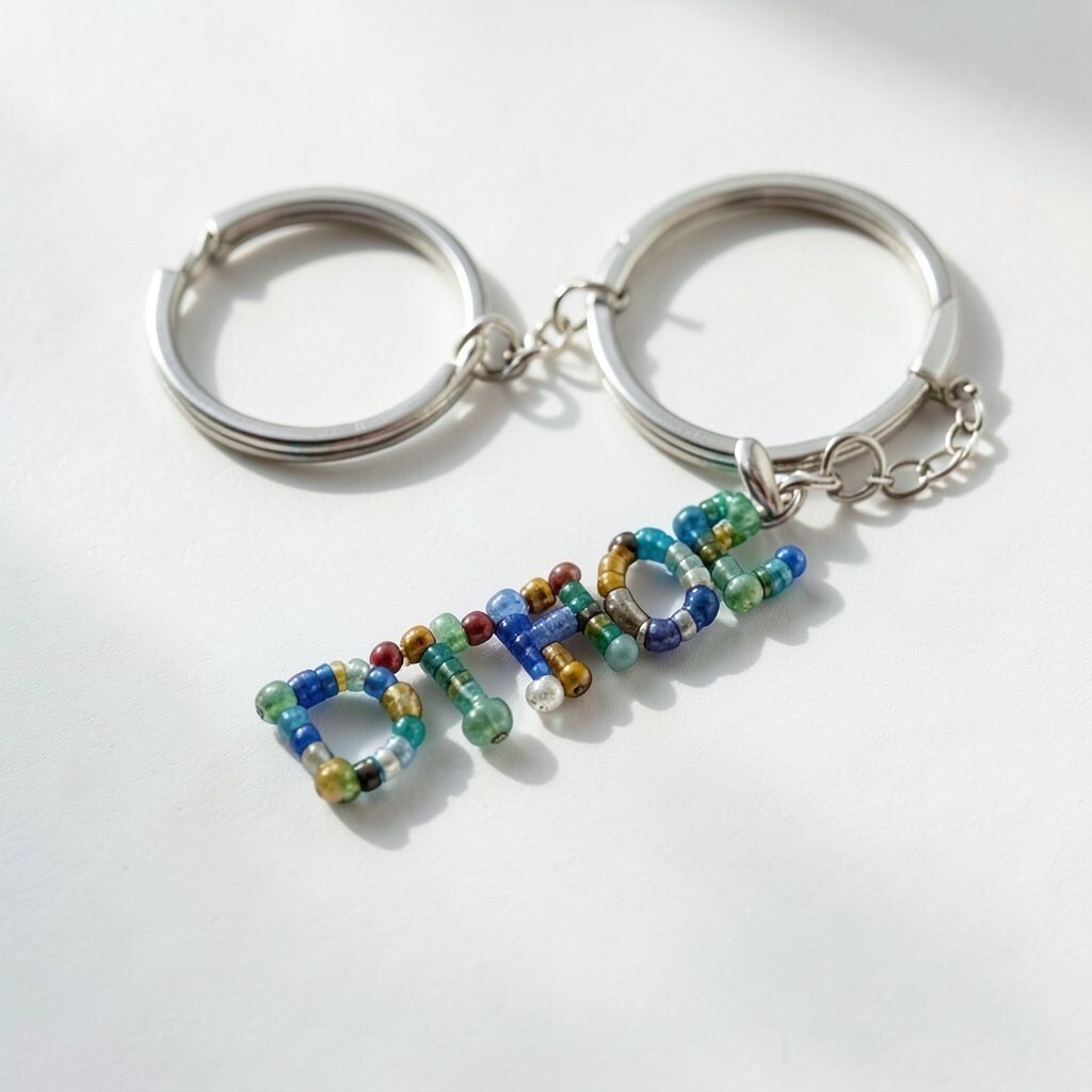 Beaded name keychains have a bright, playful look that can feel cheerful and fresh. The beads can be round, square, shiny, or matte, so the style can be as bold as you want.