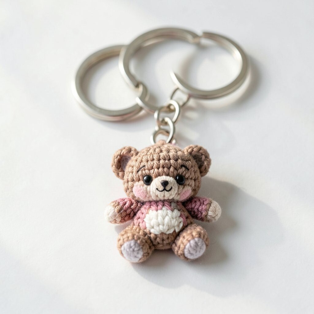 Crochet keychains look soft, handmade, and full of charm. A tiny cat, bear, mushroom, or flower can bring a sweet and cozy feeling to your keys.