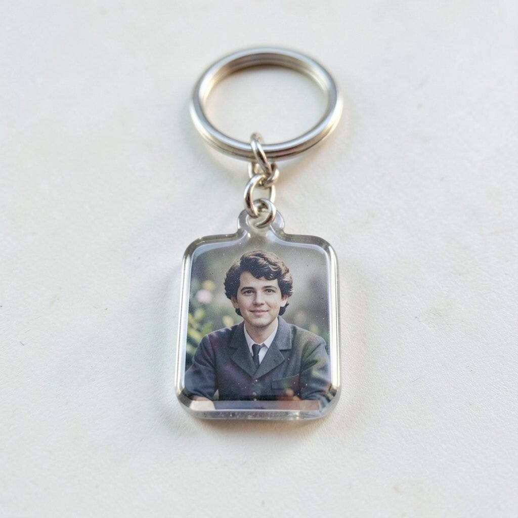 A resin photo keychain holds a small picture in a clear, glossy shape. It can look bright and shiny, like a tiny keepsake you can carry every day.