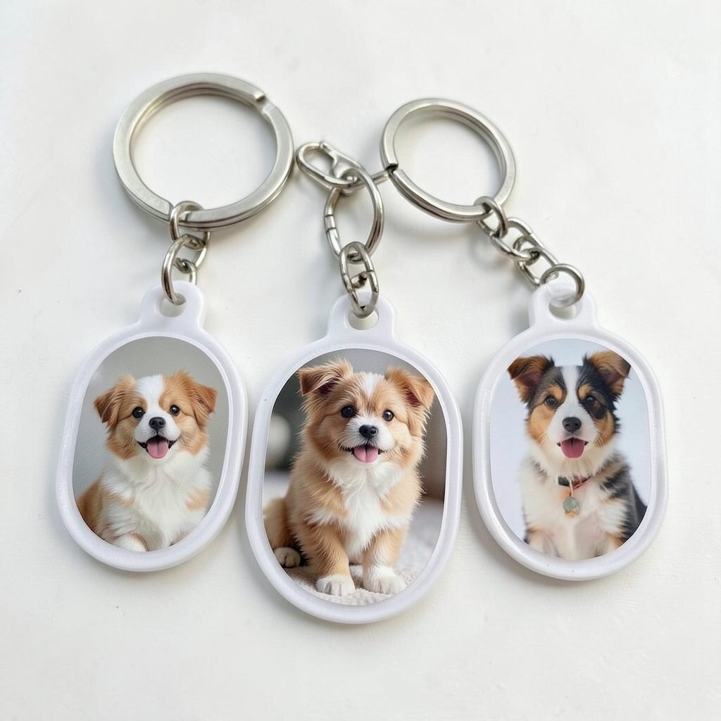 2. Cute Pet Photo Keychains with Vinyl Borders