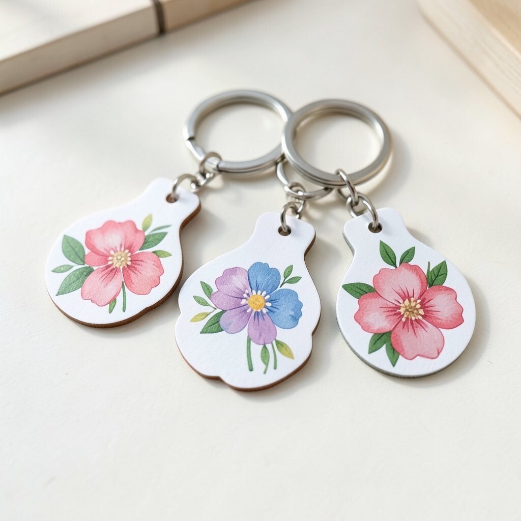 Floral vinyl keychains feel sweet, calm, and pretty. A flower outline or leafy border can make a plain shape look elegant in a simple way.