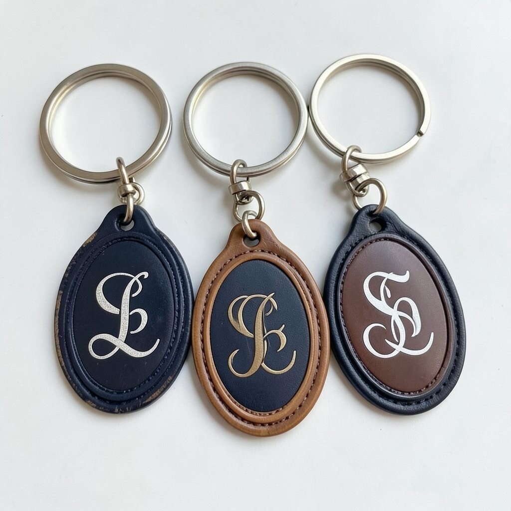 Try adding a small border, crown, or leaf detail to make the monogram stand out more. These keychains are easy to personalize and can be made in many color pairs for different people.