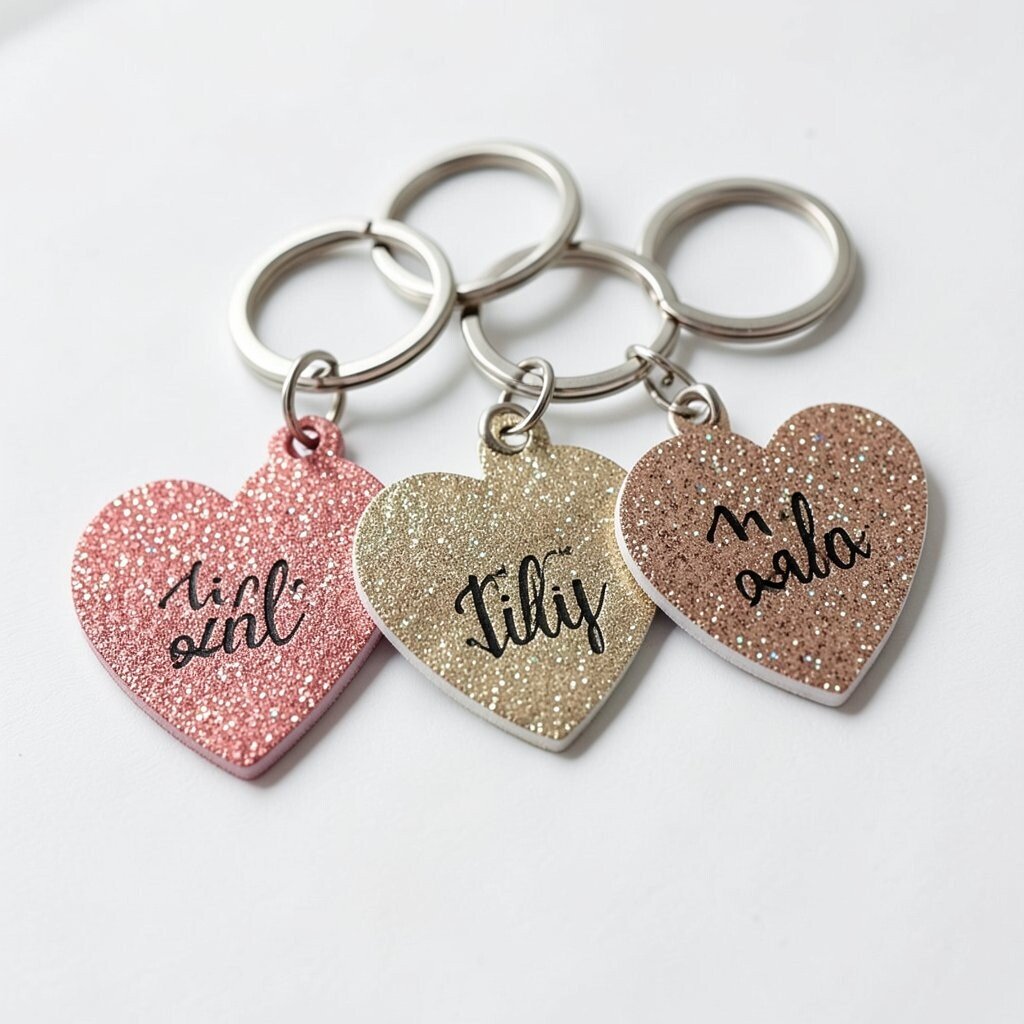 Glitter heart keychains are bright, sweet, and easy to love. A vinyl name on top of the heart makes the design feel even more personal.