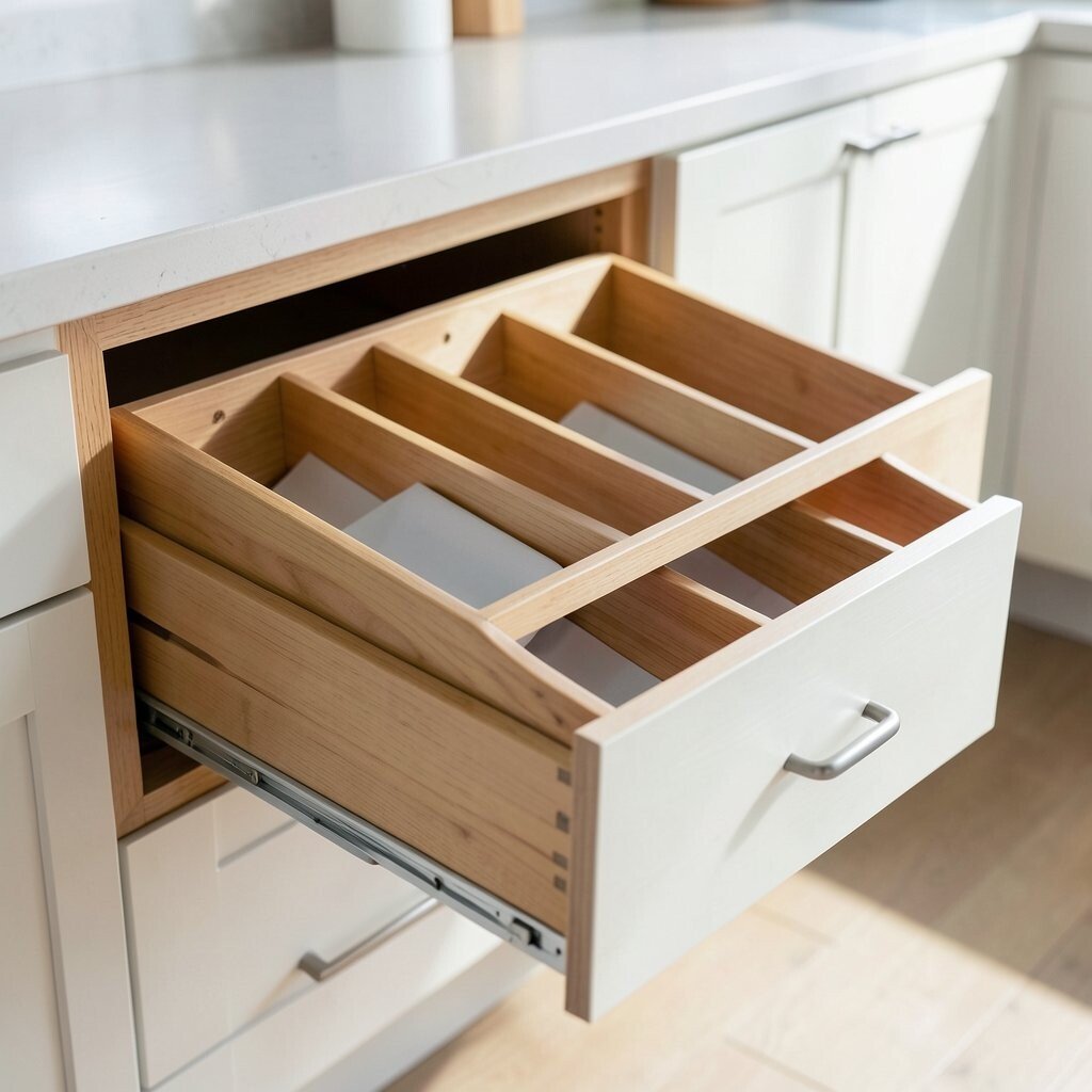 Adjustable drawer dividers are like magic for your kitchen drawers. They help you keep utensils and tools neatly separated.