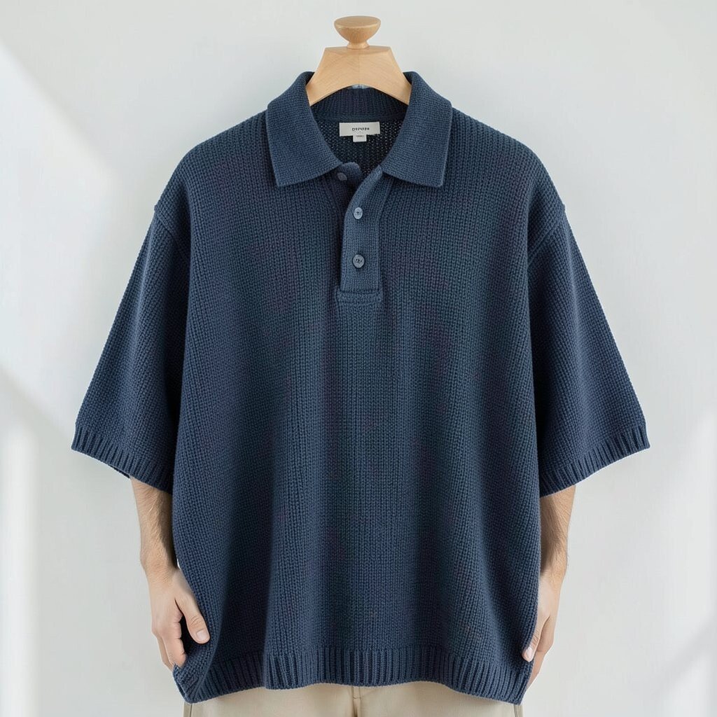A ribbed hem can add structure to a knitted polo. This design detail helps the shirt maintain its shape and provides a snug fit.