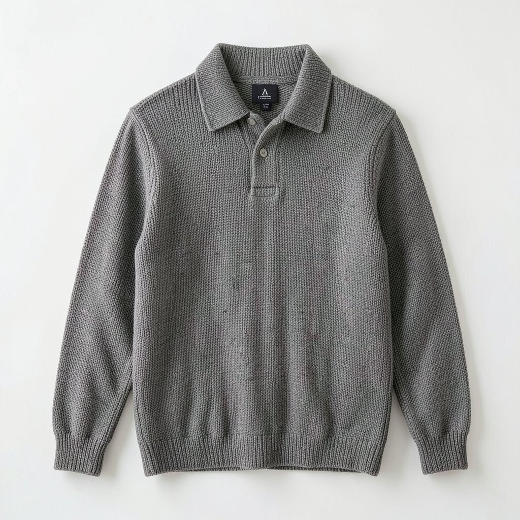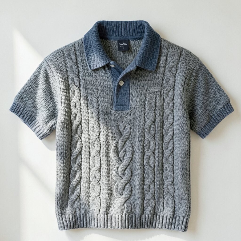 A cable knit polo adds texture and depth to your outfit. This design is unique and eye-catching, offering a twist on the traditional polo shirt.
