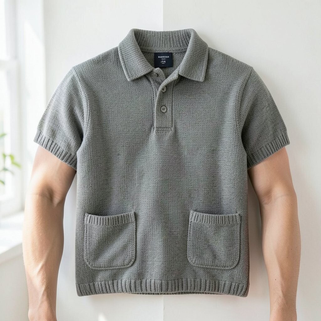 Pockets add functionality to a knitted polo, making it both stylish and practical. This design helps you keep small essentials close at hand.