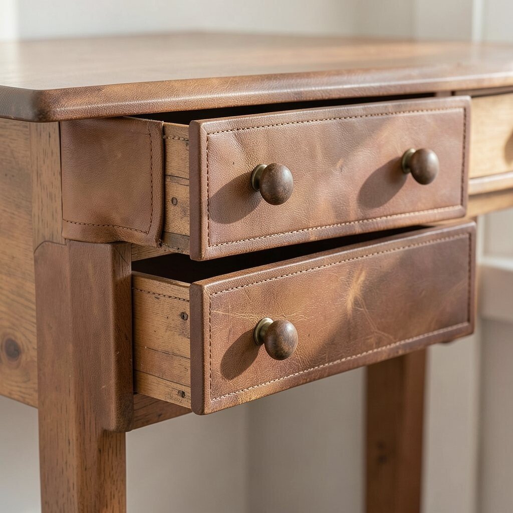 Drawer pulls made from leather squares can change the mood of a dresser or cabinet fast. The texture feels warm and inviting, unlike hard plastic or plain metal.