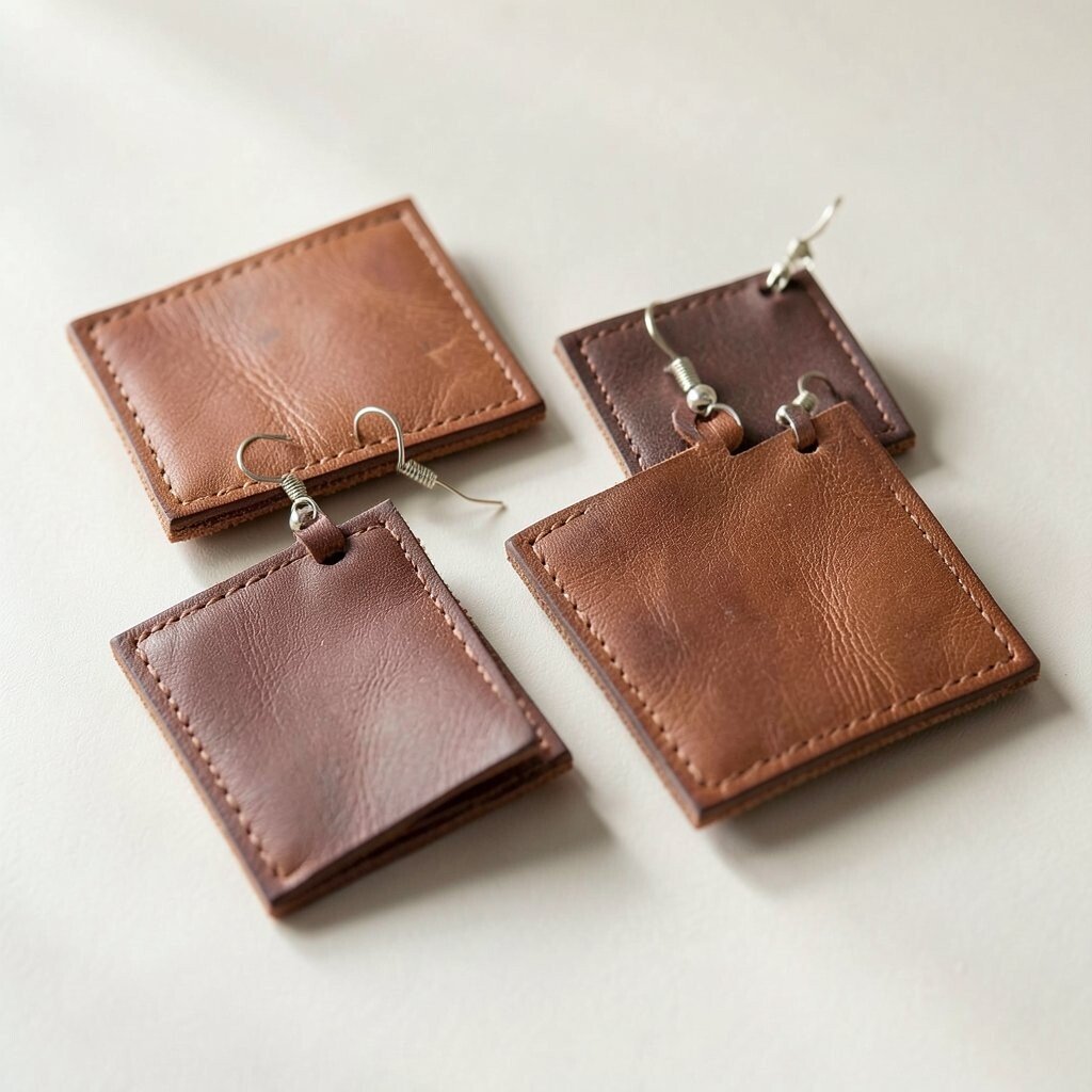 Leather earrings made from small squares can feel light and stylish. Their shape can be simple, geometric, or playful depending on the cut.