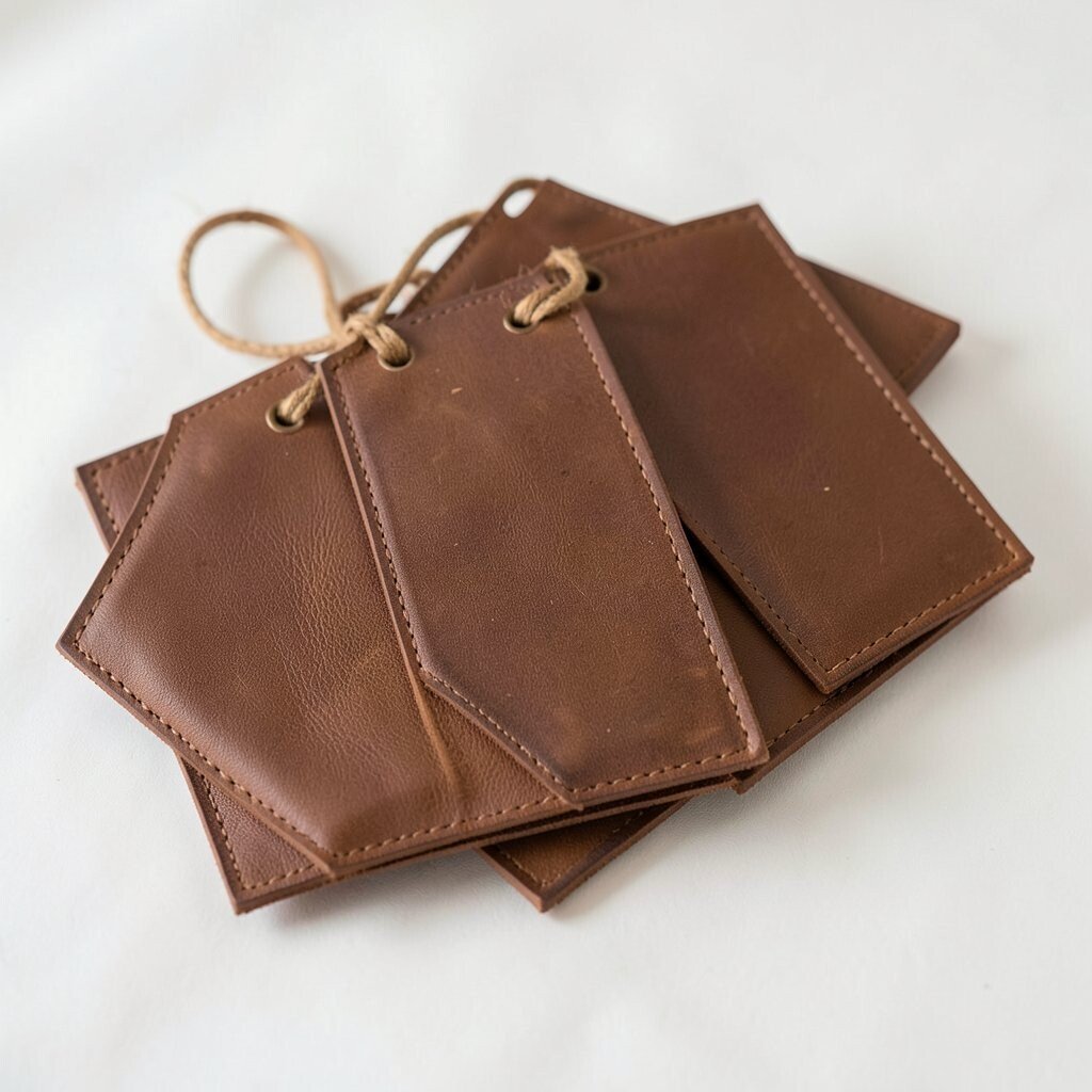 Small leather squares can become sweet tags for bracelets, necklaces, or handmade gift boxes. They give jewelry a boutique-style look without much work.