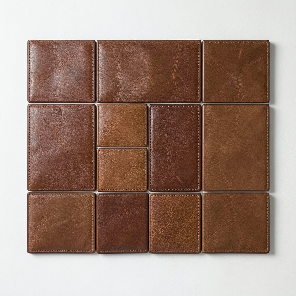 Leather squares can be arranged into wall art that feels bold and rich. The mix of textures creates a warm look that stands out in a room.