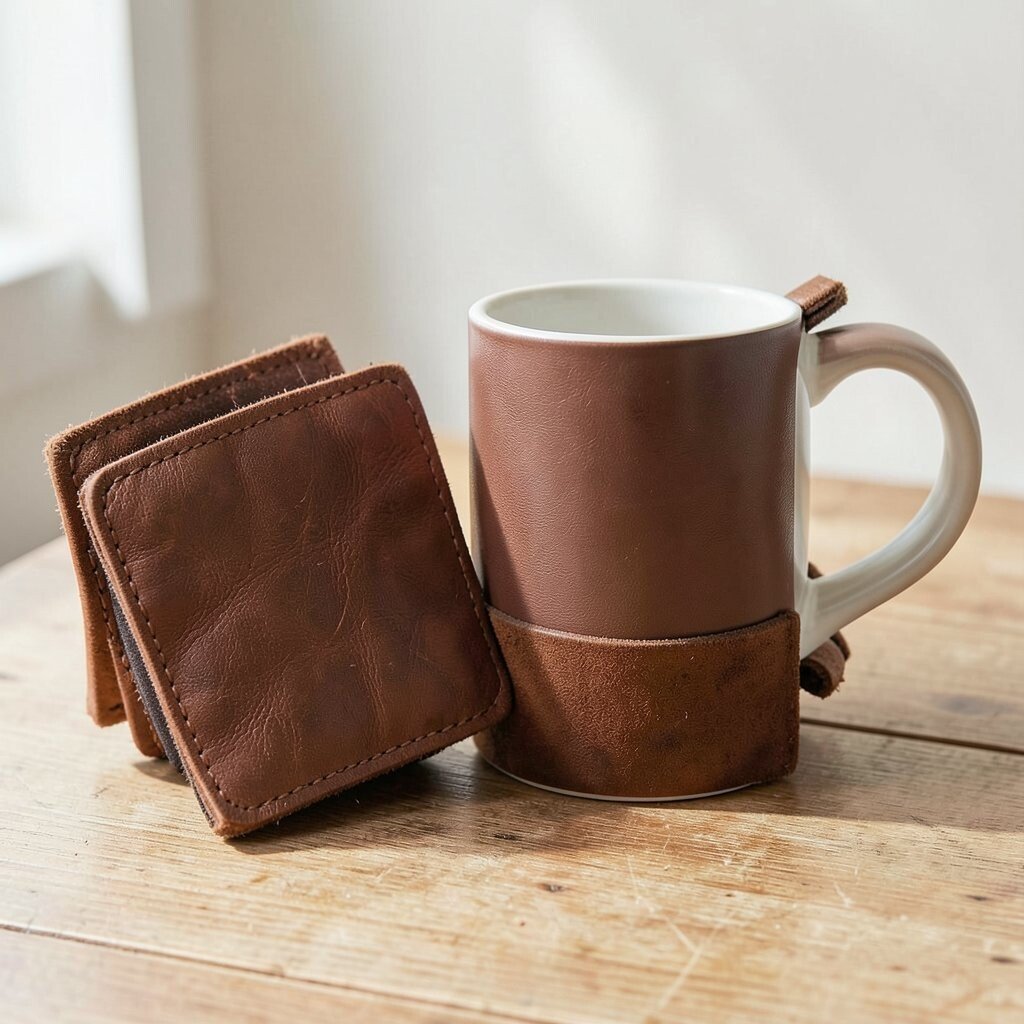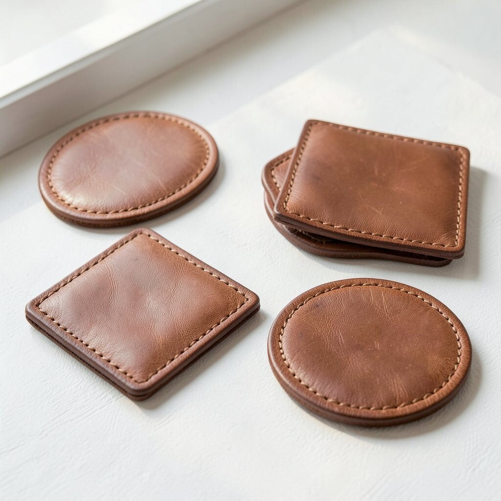 Leather coasters bring a warm, polished look to any table. Their smooth surface and stitched edges can make even a simple drink setup feel stylish.