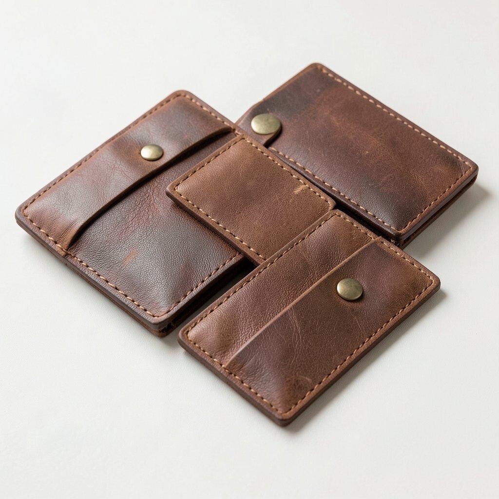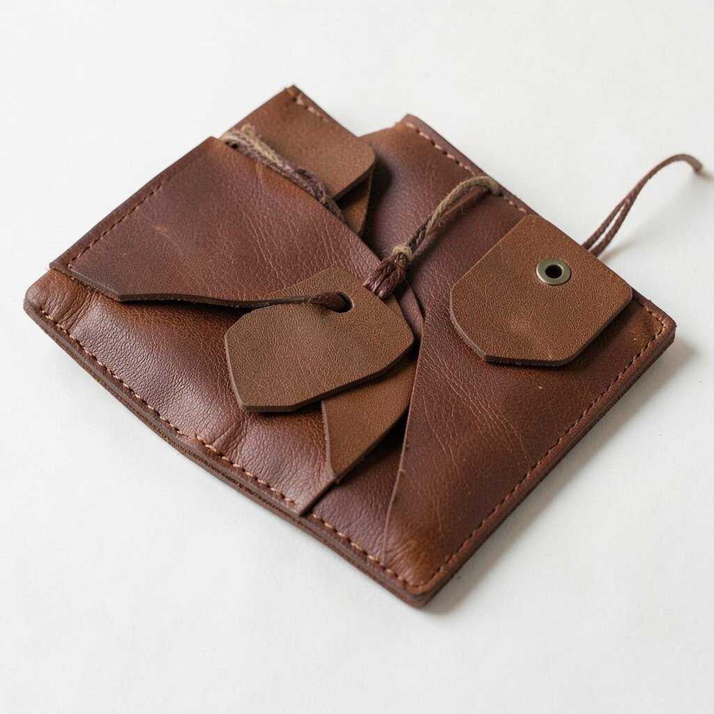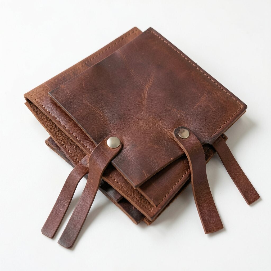 Mini pouches made from leather squares are handy for coins, earbuds, or tiny craft tools. They feel sturdy in the hand and look much nicer than a plain plastic bag.
