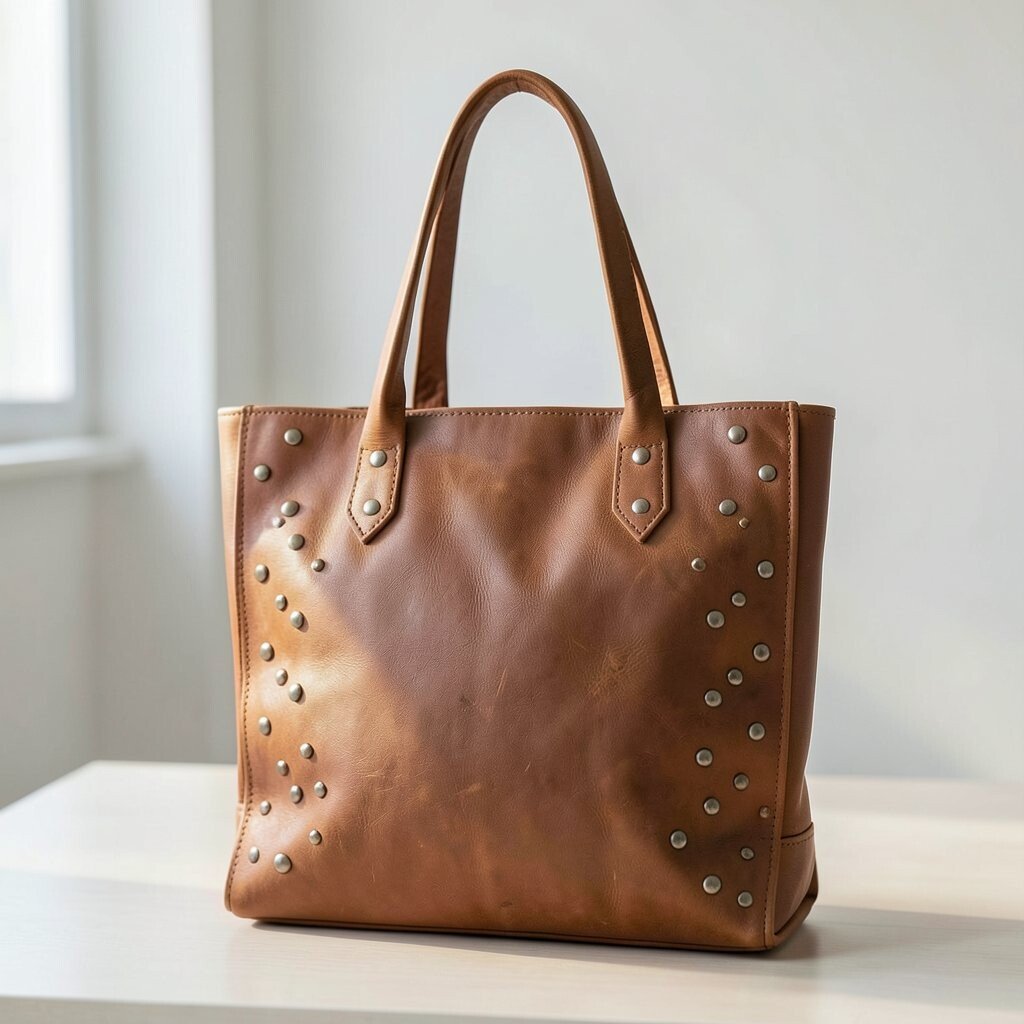 Add an edge to your style with a studded leather tote. The studs provide a rock-n-roll vibe, making the bag a standout piece.