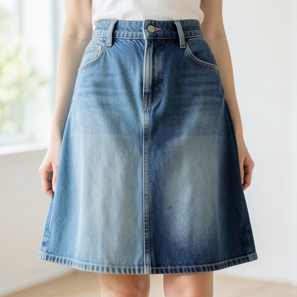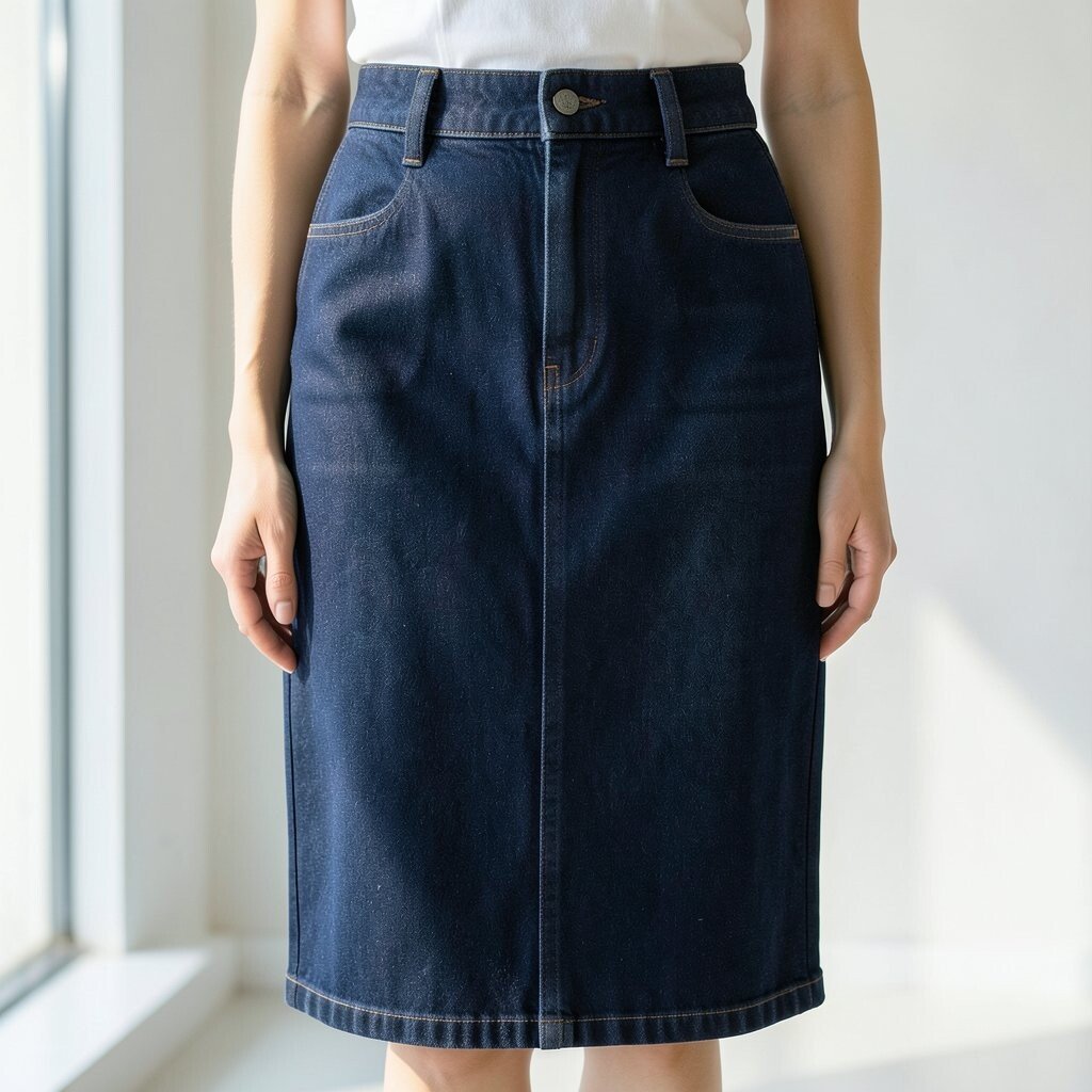 For a sophisticated look, try a dark denim pencil skirt. It hugs the curves and highlights the waist. Pair it with a blouse for work or a night out.
