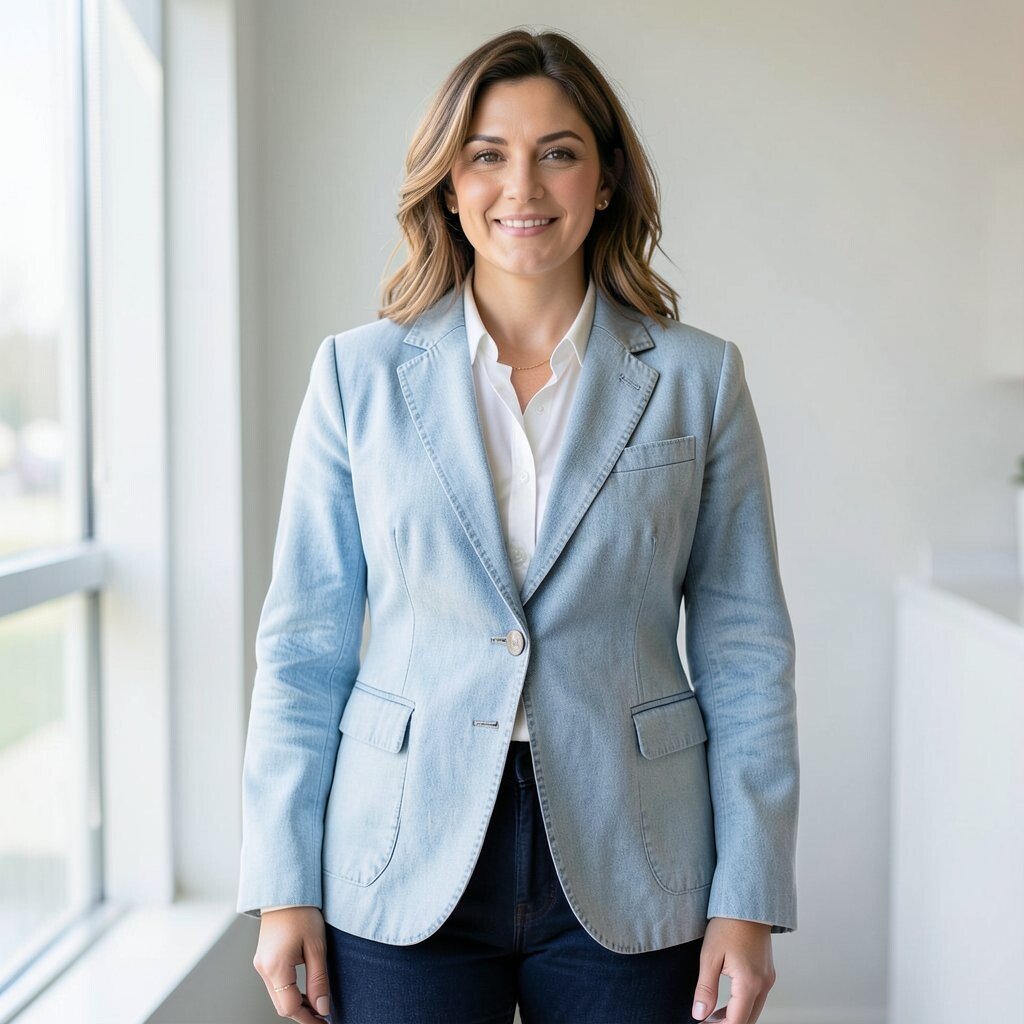 A light denim blazer is a stylish way to dress up any outfit. It’s perfect for layering over dresses or shirts. The light color adds a fresh, modern touch.