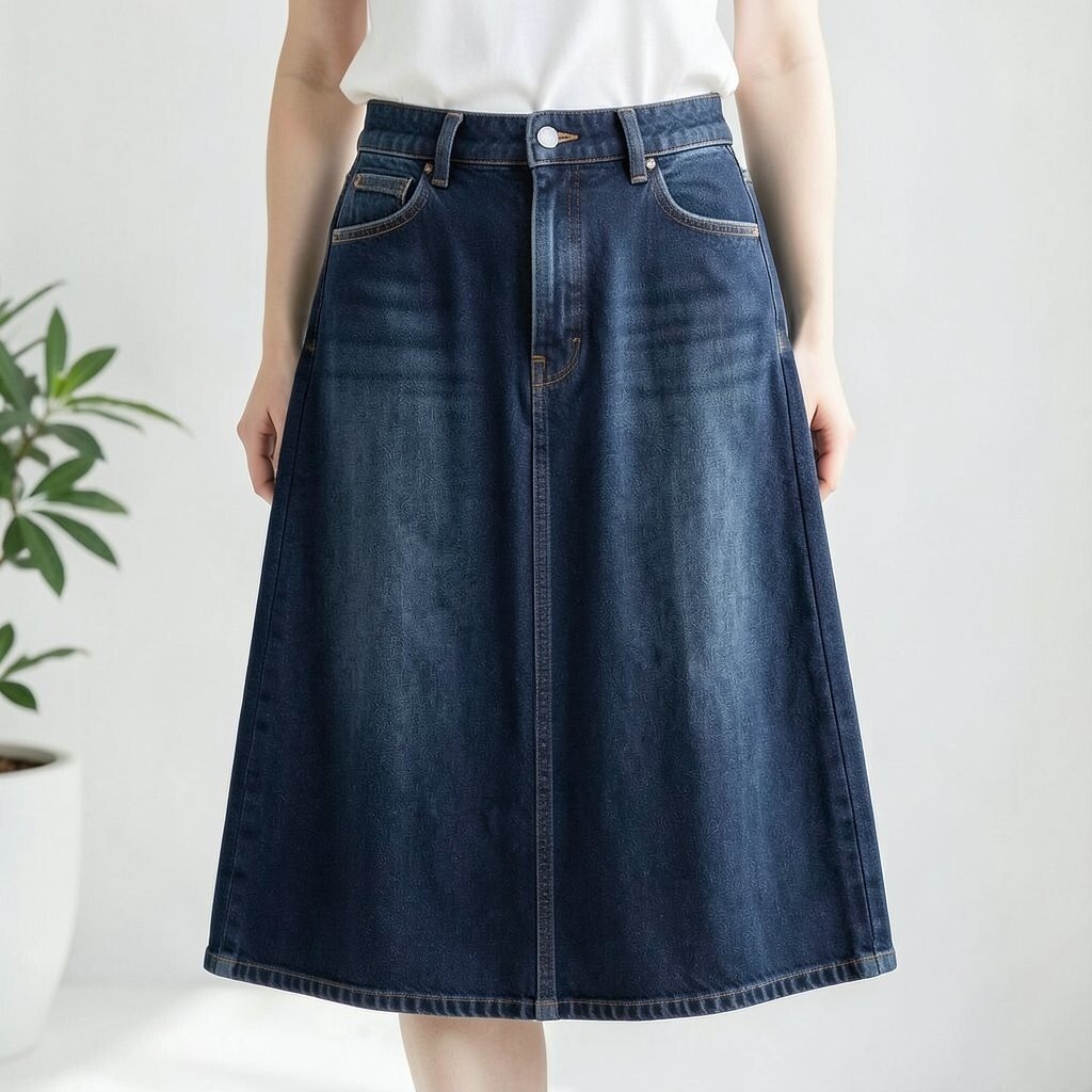 Dark denim midi skirts are elegant and versatile. They pair beautifully with blouses or tees. The dark color adds sophistication to any look.