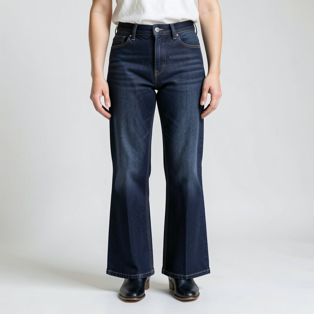 Dark denim bootcut jeans are a classic choice. They pair beautifully with boots or sneakers. The dark hue lends a refined look.