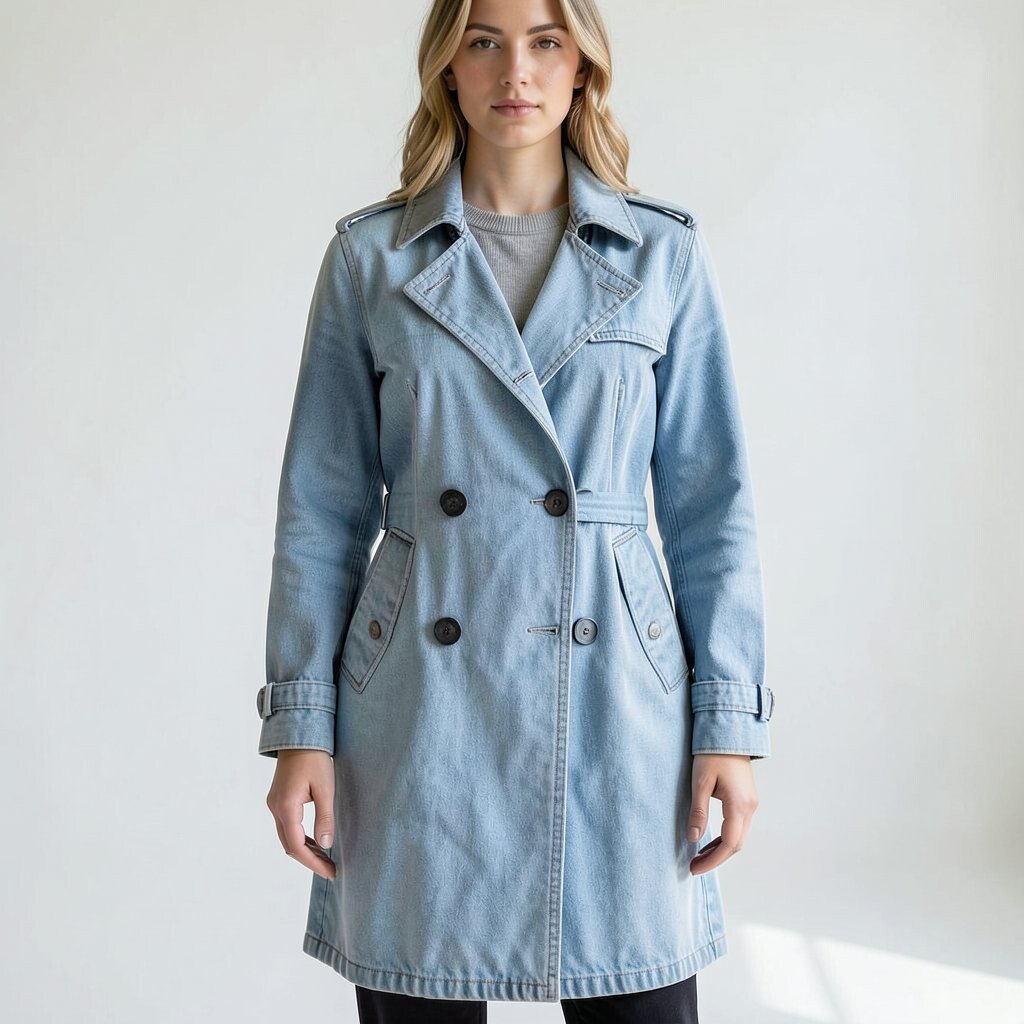 A light denim trench coat is a trendy twist on a classic piece. It’s perfect for layering and adds a fresh look to any outfit. Pair with jeans or leggings for a stylish ensemble.