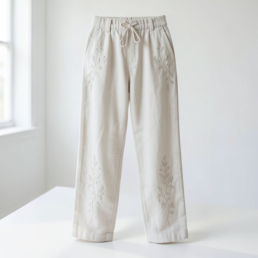 Embroidered linen pants are pieces of art. Intricate designs add a touch of elegance to the natural fabric.