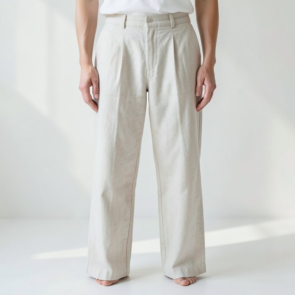 Pleated linen pants offer a tailored look with a relaxed fit. The pleats add texture and interest to the fabric.