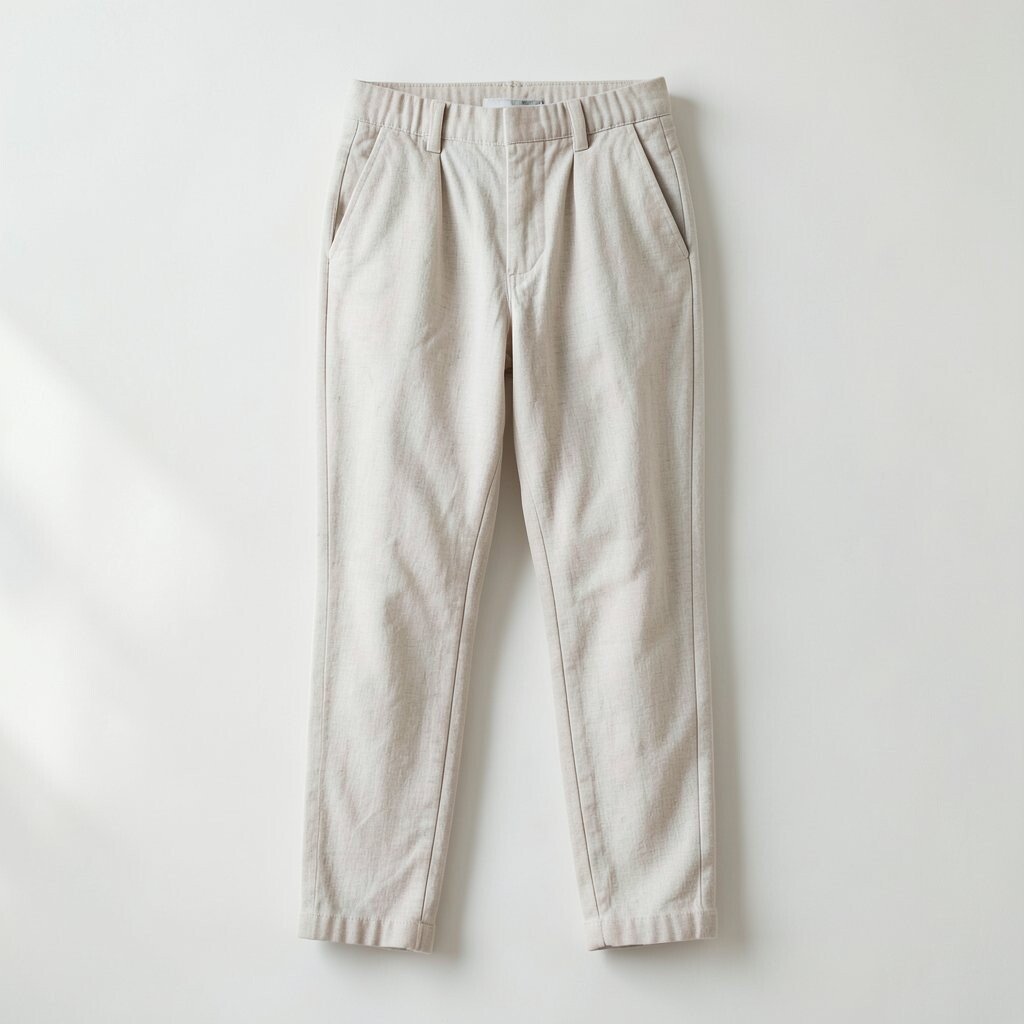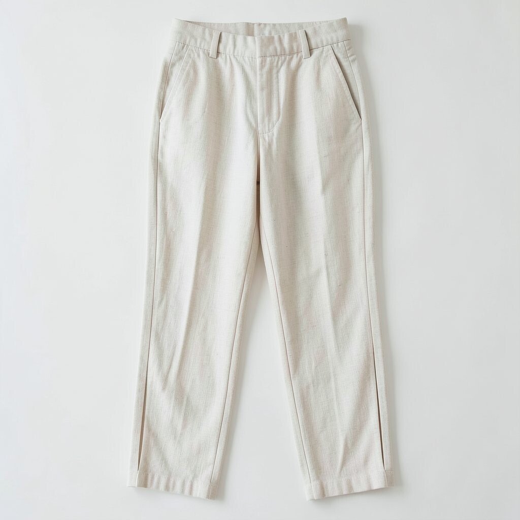 Sculpted linen pants offer a tailored fit with unique stitching. They are perfect for a polished and professional look.