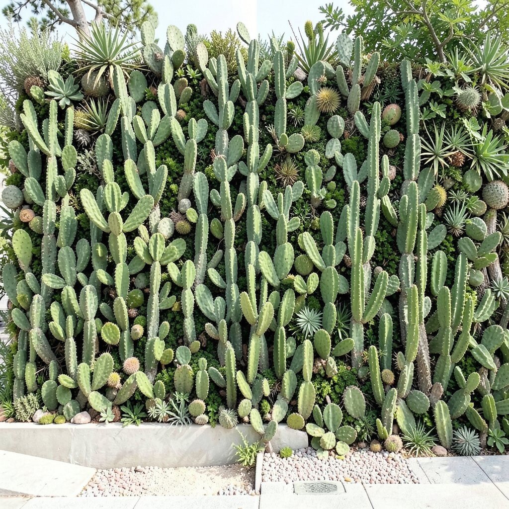 For a desert-inspired look, consider a cactus wall. Cacti are hardy and require little water.