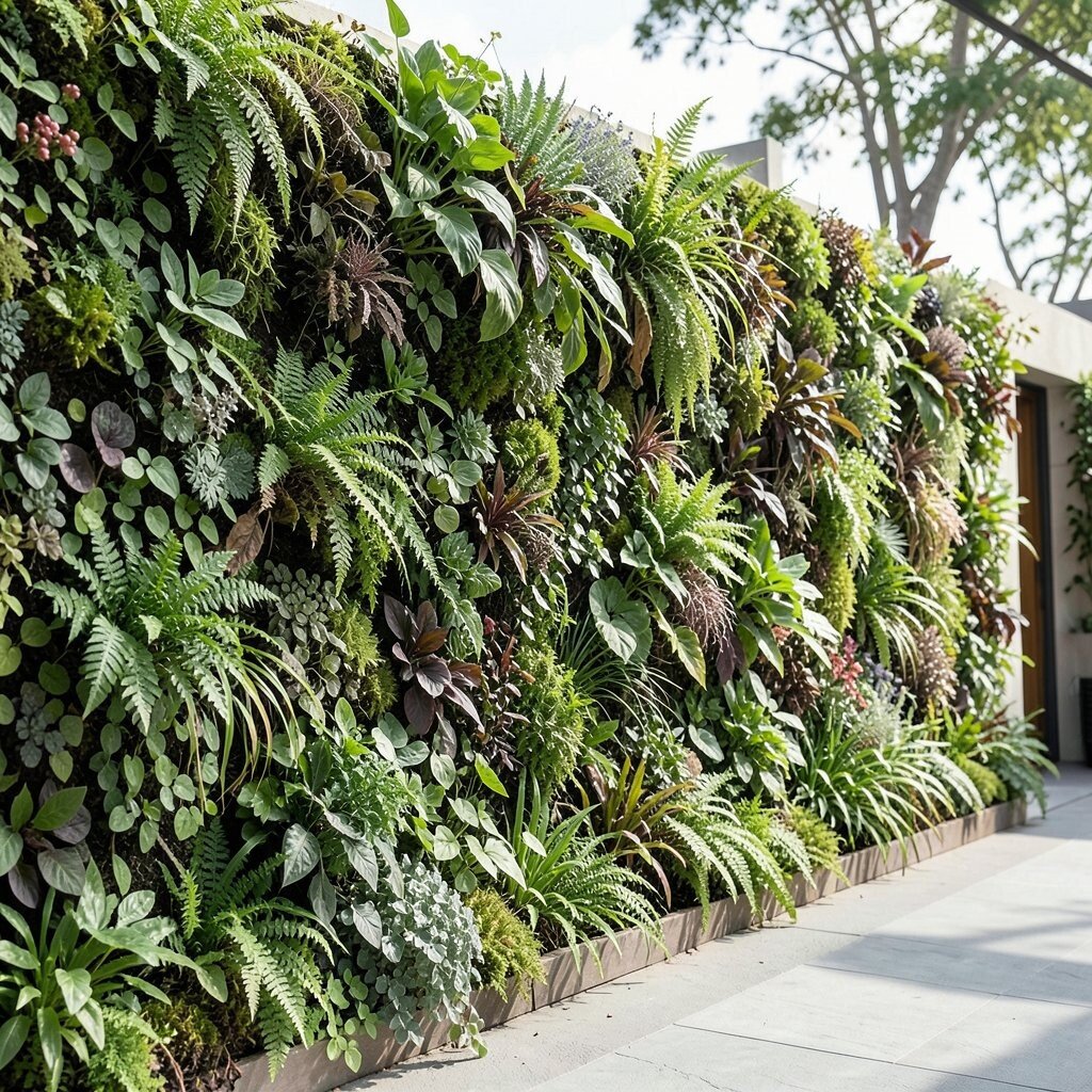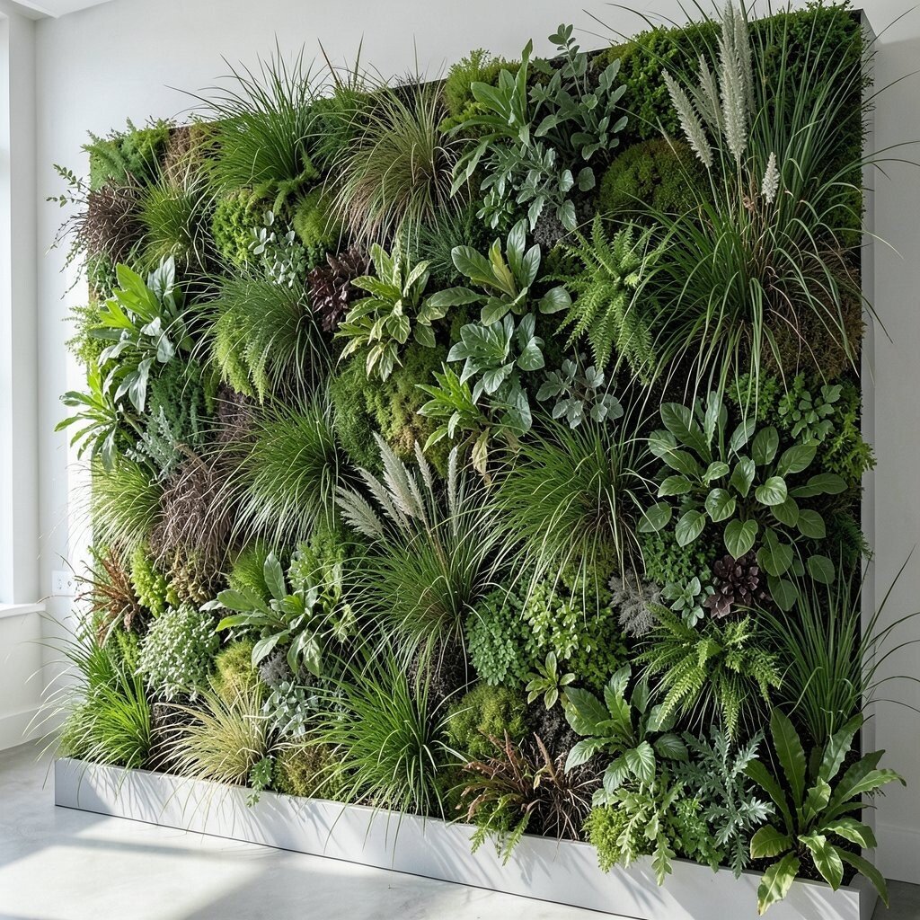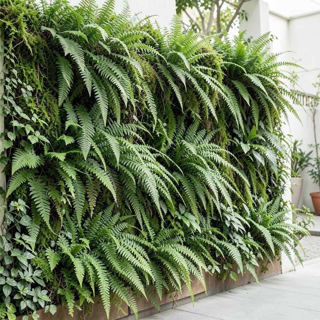 Ferns are graceful and lush, making them ideal for vertical gardens. Their feathery fronds add movement and texture to your wall.