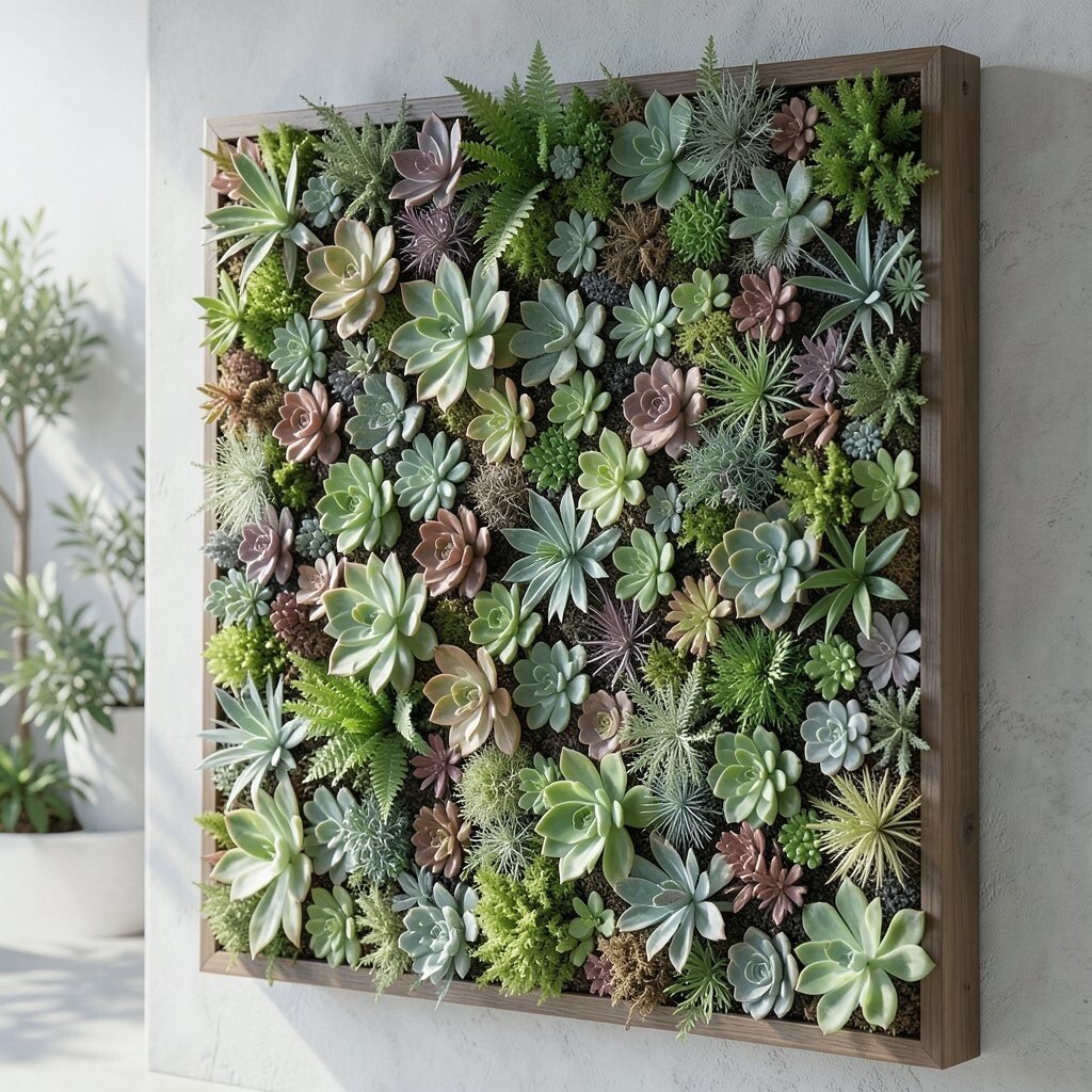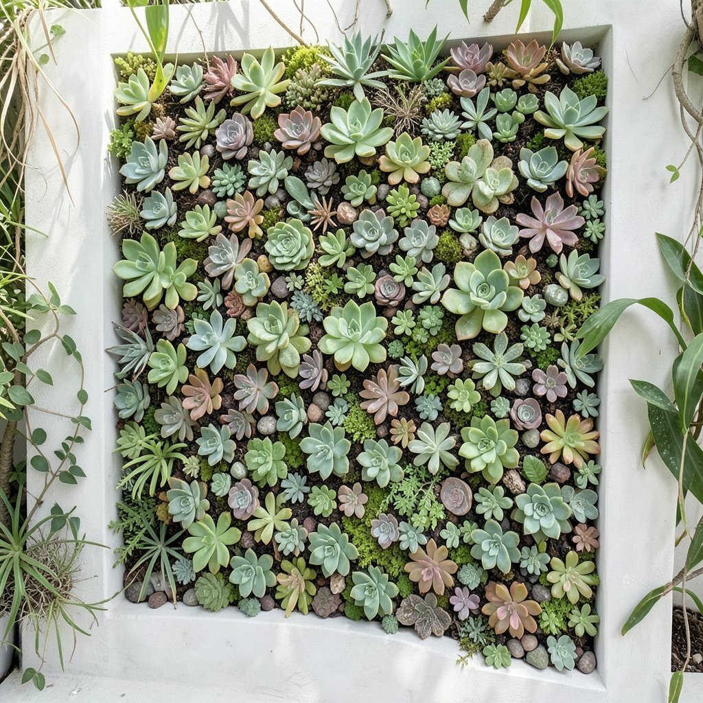 Succulents are perfect for creating a vibrant, low-maintenance living wall. Their diverse shapes and colors can create a stunning mosaic-like effect.