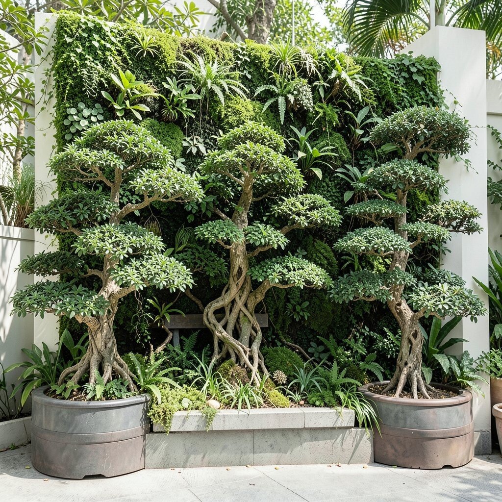 Bonsai trees are an art form in themselves. A vertical bonsai garden brings this art to your walls.