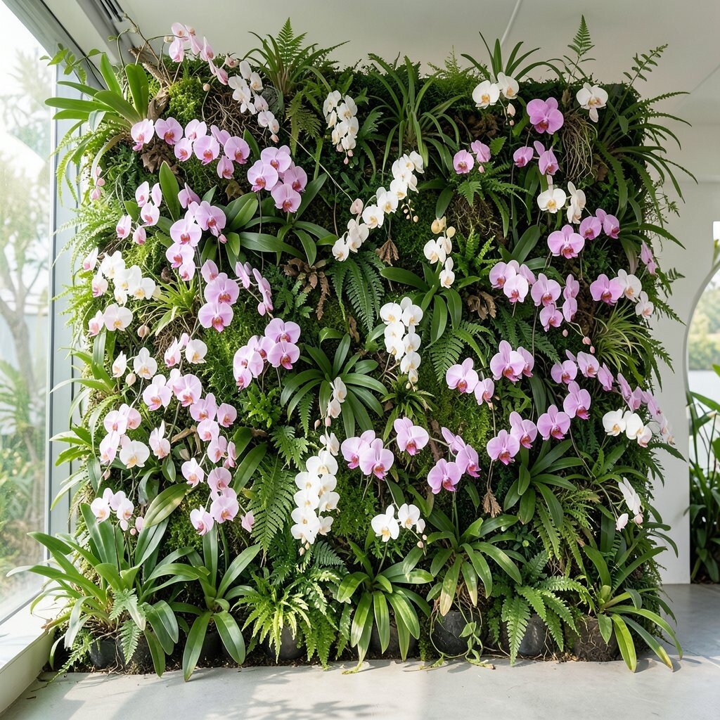 Orchids are elegant and sophisticated, making them perfect for a vertical garden. Their stunning blooms add a pop of color and grace.