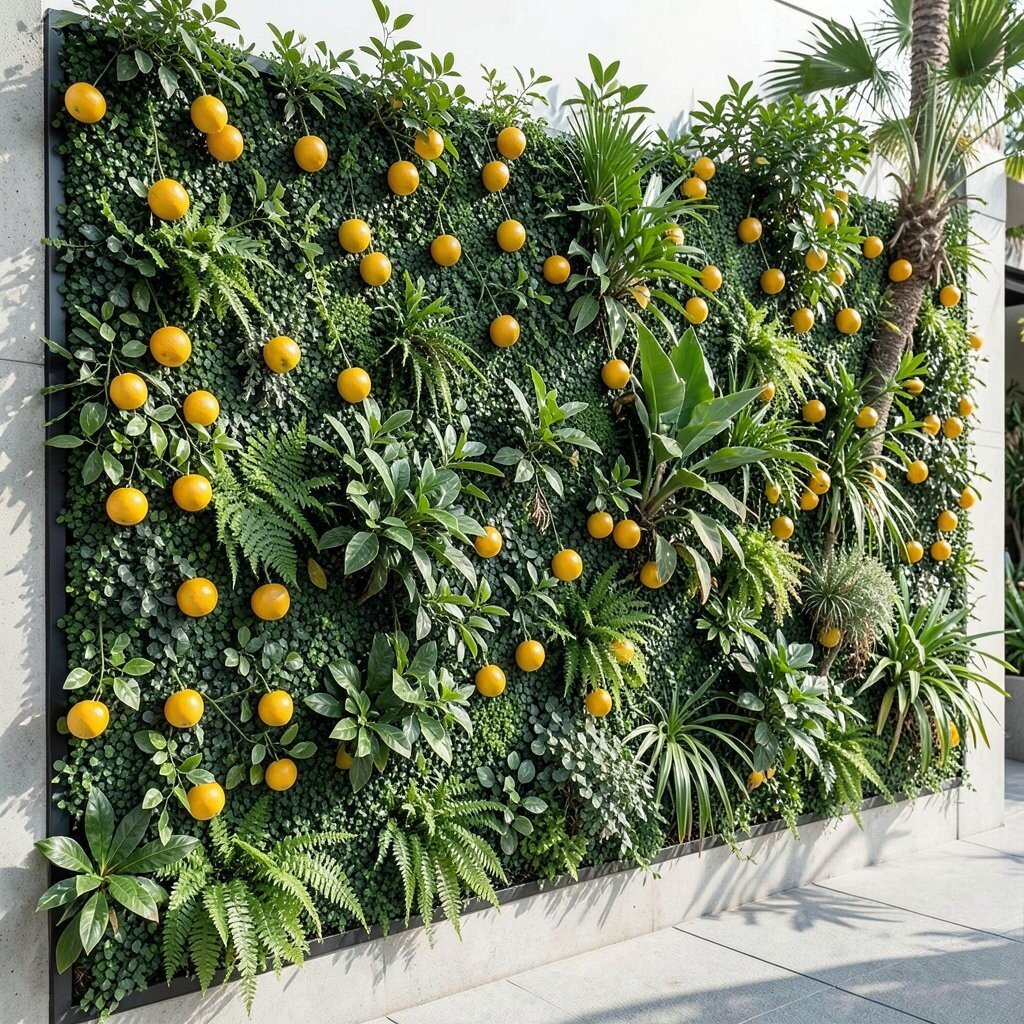 A vertical citrus garden is perfect for sunny spots. Grow dwarf citrus trees like lemons or limes.
