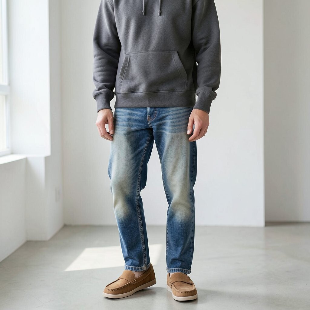 This style is good for casual days when you still want to look thoughtful. A plain tee, a hoodie, or a clean overshirt can work well. Minimal loafers are often a smart buy because they fit many outfits and do not go out of style fast.