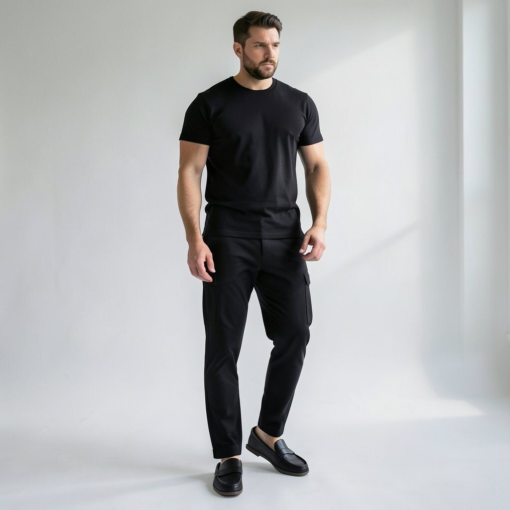 Joggers can be low cost, but the fabric should still look neat. A clean fit makes the whole outfit feel much more intentional.