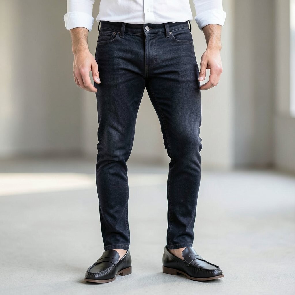The mix works well for casual days, dinner plans, or a smart coffee meet-up. Black leather loafers usually look the most polished here, but brown pairs can soften the style.