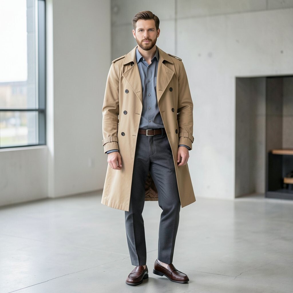 Trench coats can be a bigger purchase, so it helps to choose a color that works with many outfits. Tan, navy, and black are safe choices that pair well with most loafers.