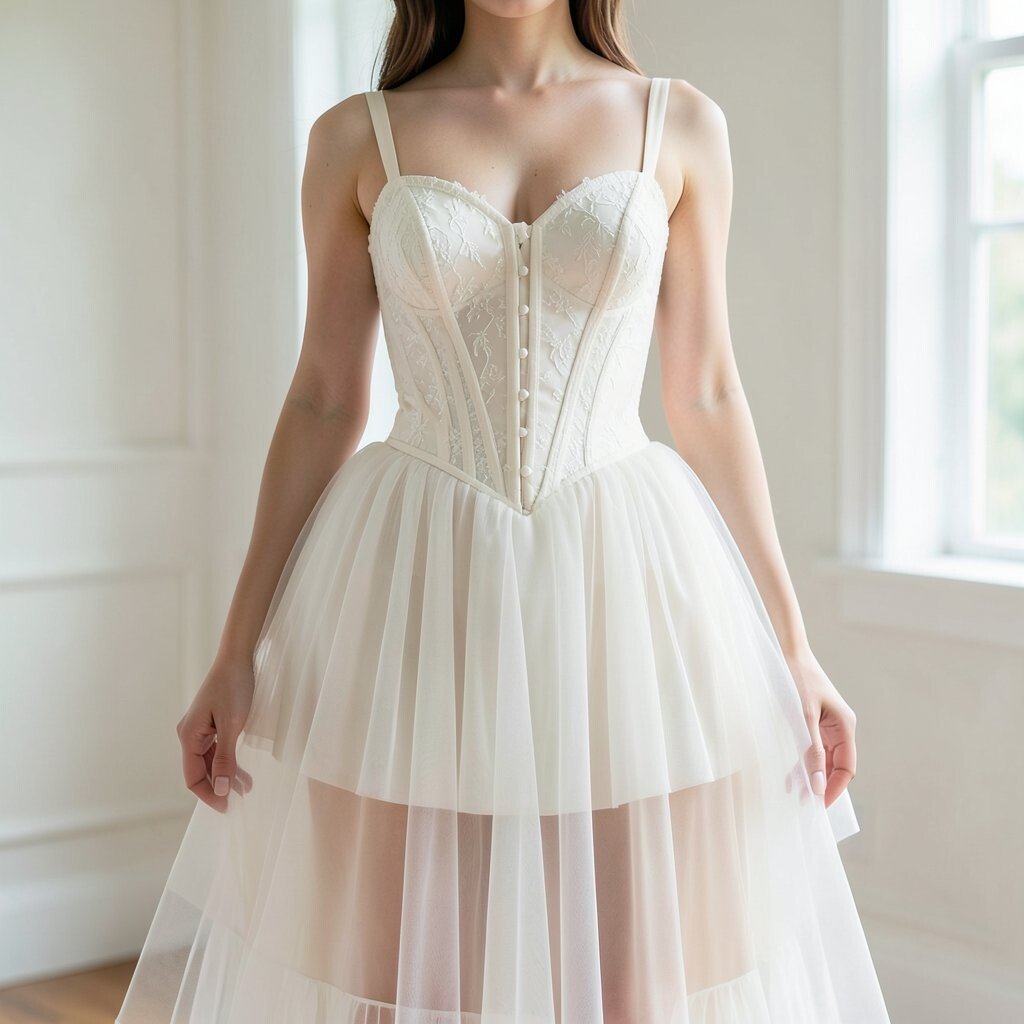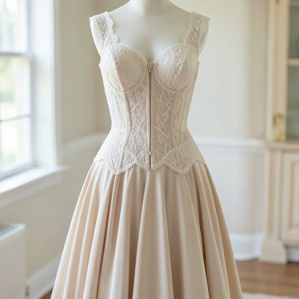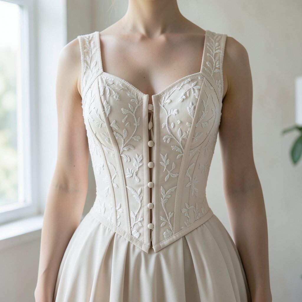 The A-line corset dress is flattering for all body types. Its gentle flare from the waist creates a balanced and elegant shape.