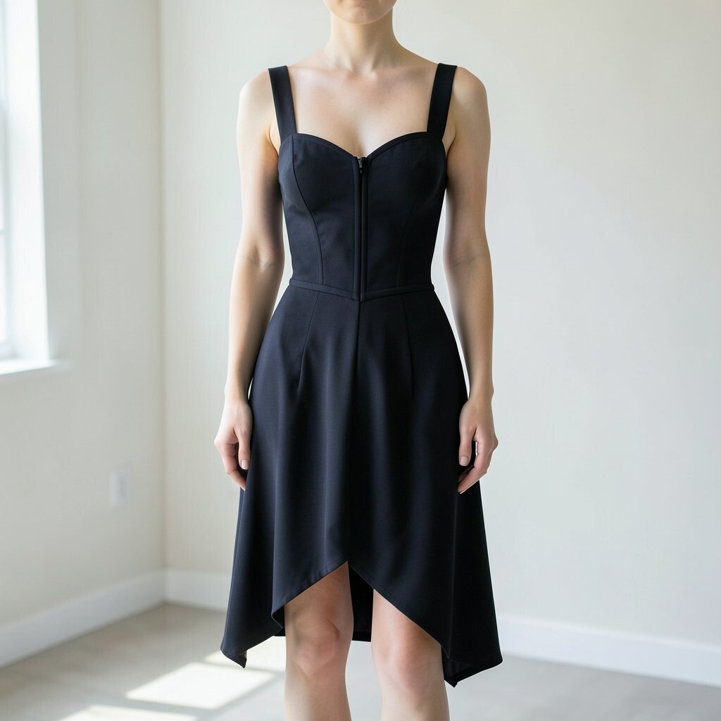 Look for dresses with contrasting fabrics to enhance the asymmetrical design. Personalize with bold makeup for a complete look.