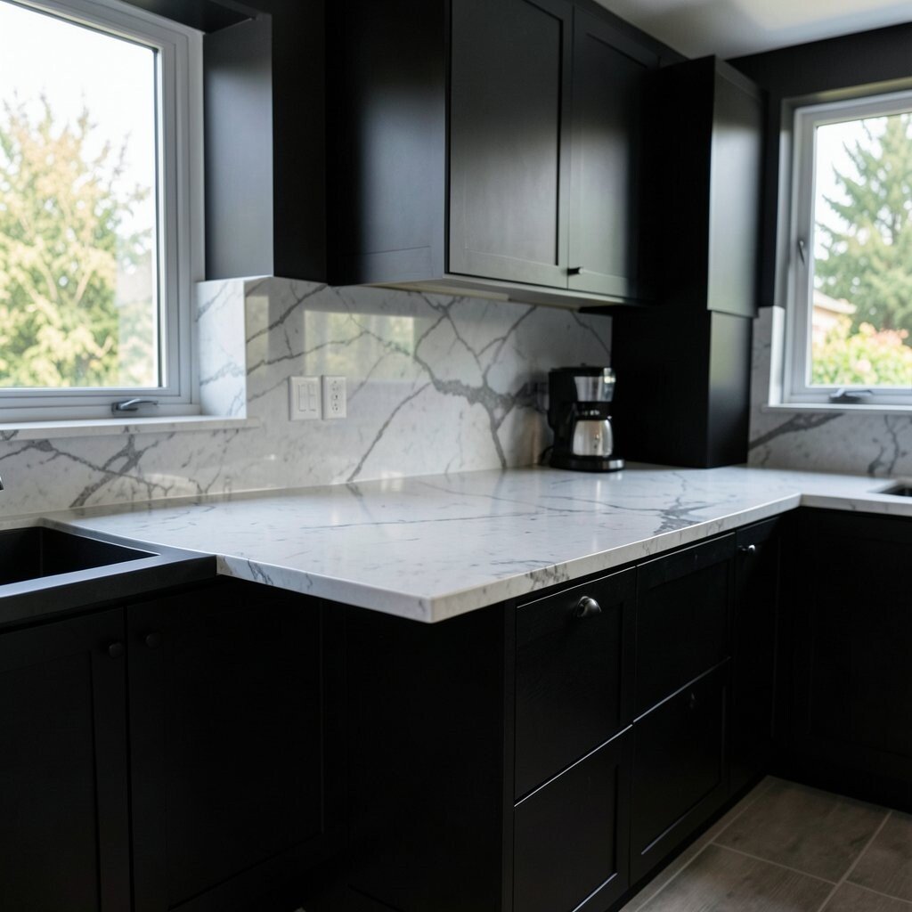 If you want something unique, consider a textured black marble countertop. The subtle texture adds an interesting layer that catches the eye.