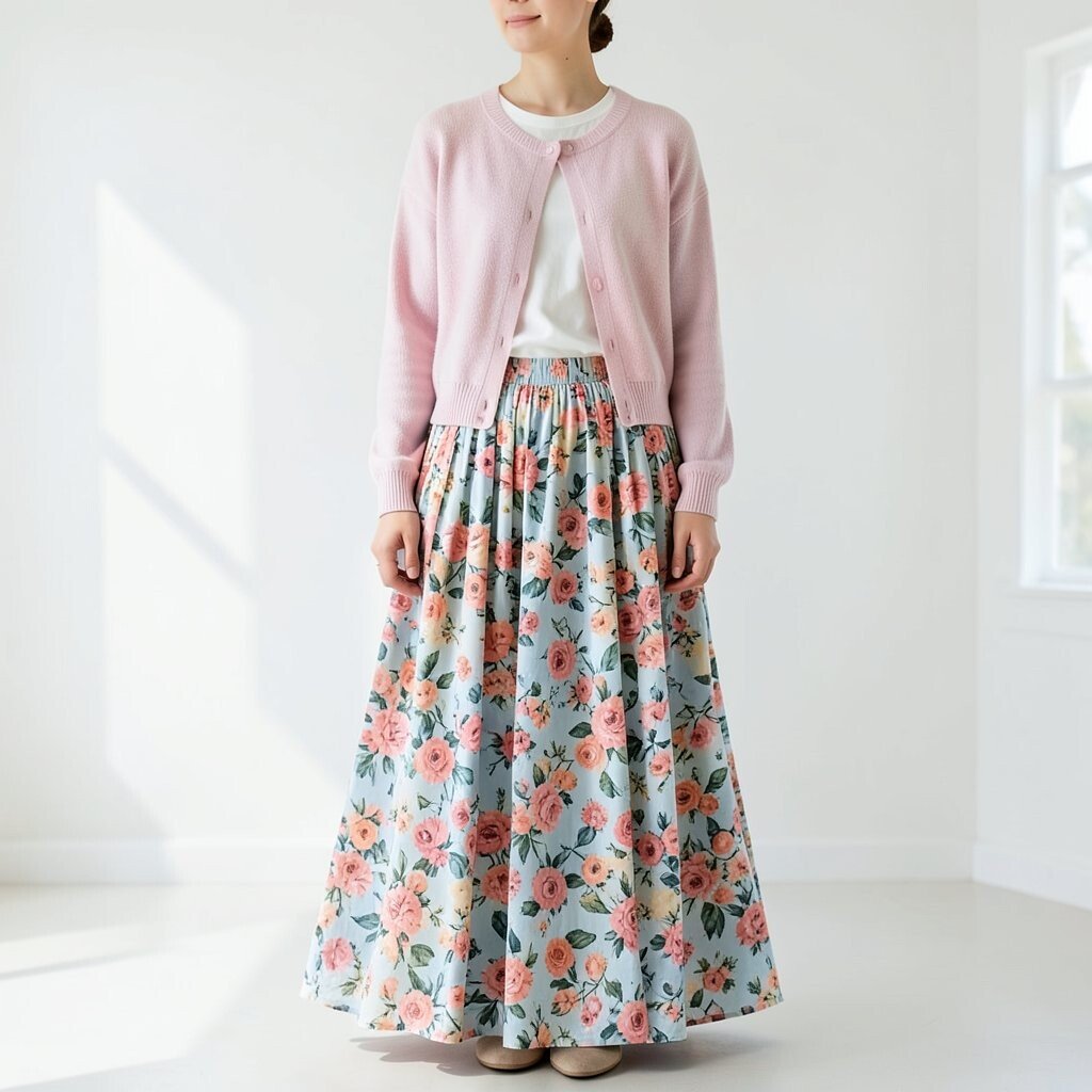 A floral maxi skirt with a pastel cardigan creates a dreamy and romantic ensemble. It’s like wearing a garden party! Florals add a touch of femininity, while pastels keep things light and airy.