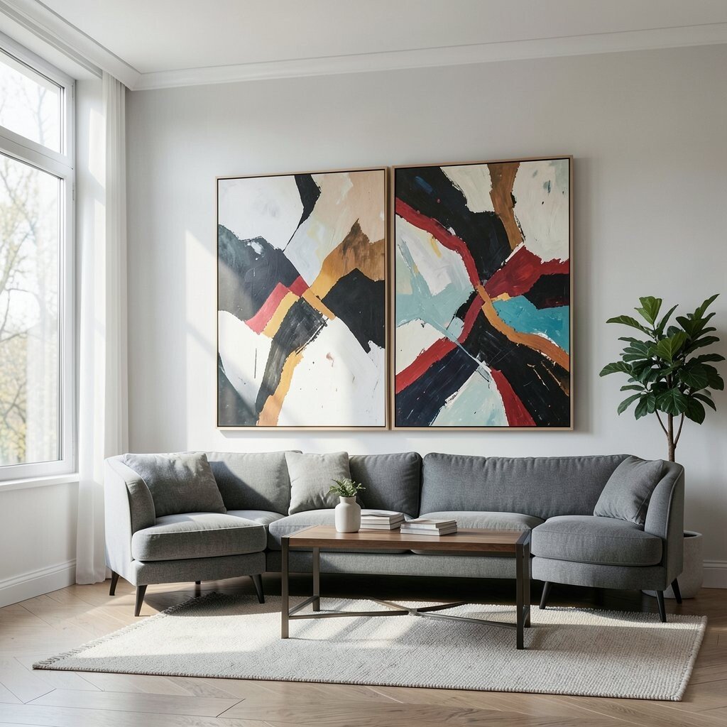 Maximalist art makes a bold statement. Large, colorful pieces can dominate a room.