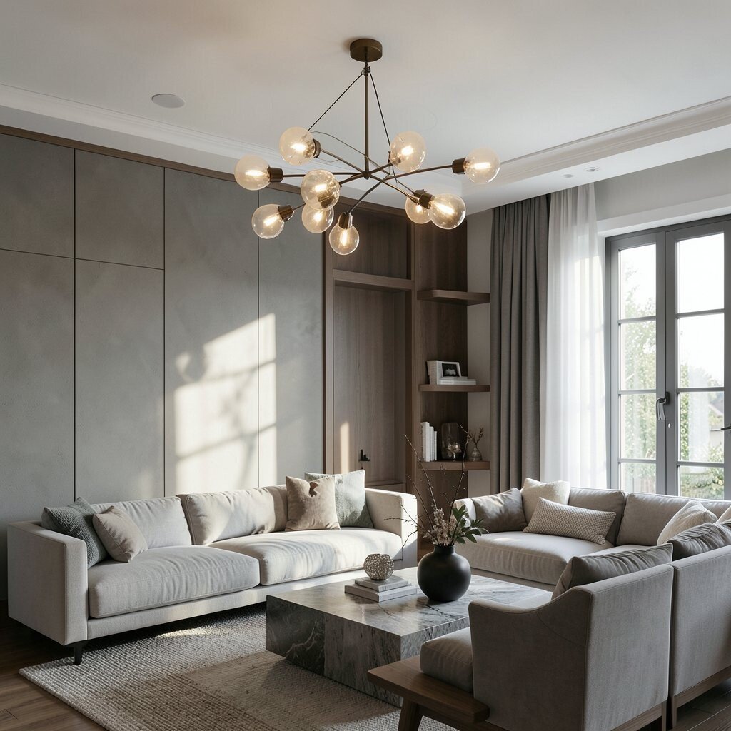 Lighting is not just functional but also a statement of style. A grand chandelier or oversized lamp can serve as a room’s centerpiece.