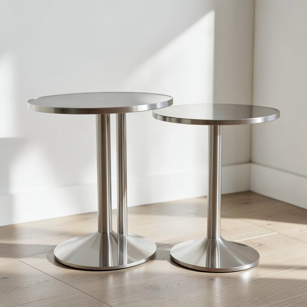 Metallic side tables add a bright spot next to sofas, beds, or chairs. Their finish can make the room feel more lively and put together.